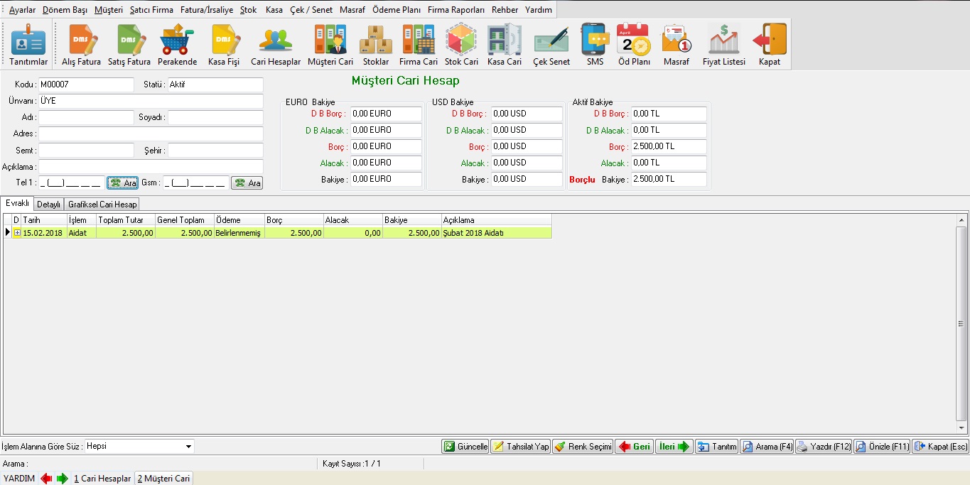 1)Ödenmemiş müşteri borçlarını tek bir tuş ile en son güncellenmiş fiyat listesi üzerinden güncelleyebilirsiniz.