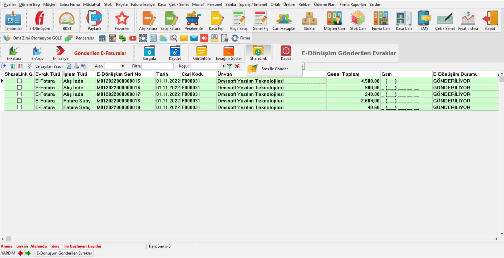 Düzendiğiniz fatura, irsaliye, mütahsil makbuzu, hesap ekstresi vb. birçok evrağı sms ile müşterinize iletebileceğiniz sistemdir.